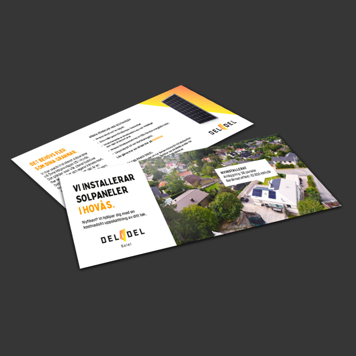 Delidel är en helhetsleverantör som hjälper företag och privatpersoner att installera och producera egen ren el med solpaneler. Klimatfrågan är en väsentlig drivkraft för företaget. Mina uppdrag har bland annat innefattat framtagning av logotyp, grafisk profil, profilmaterial samt webbdesign och UX. Jag jobbar löpande med marknadsföring och varumärkesbyggande kommunikation. Om jag har solpaneler på mitt tak? Självklart!